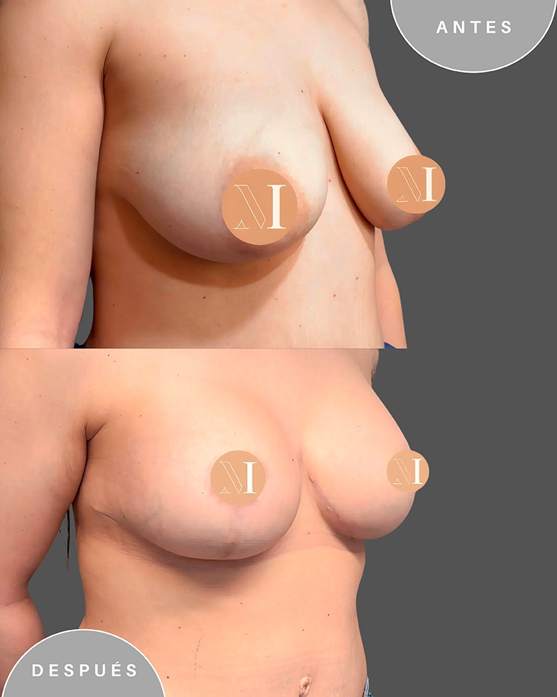 - Algunas pacientes aprovechan la oportunidad para, a la vez, aumentar ligeramente la talla de su pecho mediante una pequeña prótesis mamaria